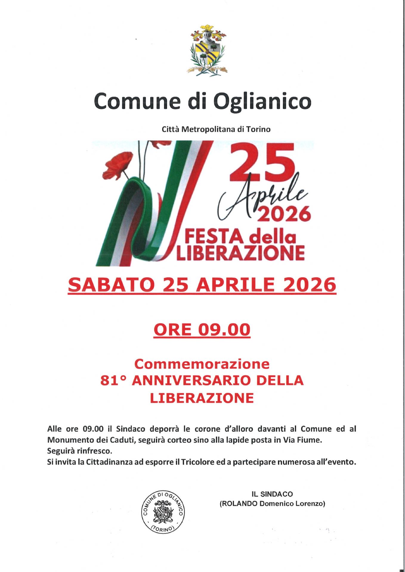 Celebrazioni 25 Aprile 2026.