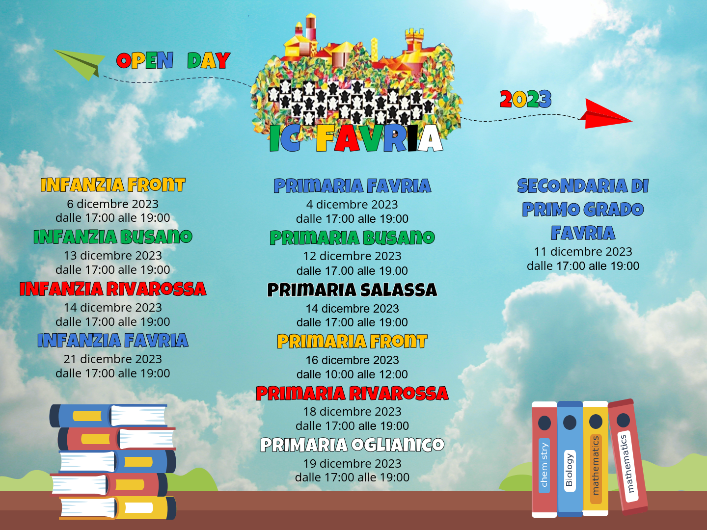 L'Istituto Comprensivo di Favria organizza le giornate a porte aperte delle scuole dell’infanzia, primarie e secondaria di primo grado.